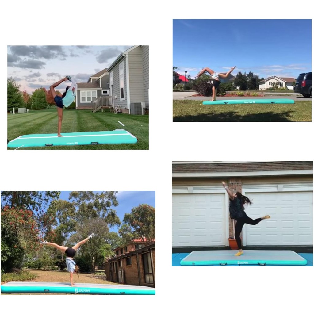 - ✔【WIDE APPLICATION & ALL SIZES】AKSPORT Inflatable Air Mat Tumble Track Can be used in the Gymnasium/Home/School/Garden/Backyard Grass/Park/Beach/Pool/Fitness Clubs/Dance Clubs/Gymnastic Training/Yoga/Cheerleading/Exercises/Outdoor Sports.Lots of sizes for choice(Due to manual measurement,please allow 1-3cm difference)