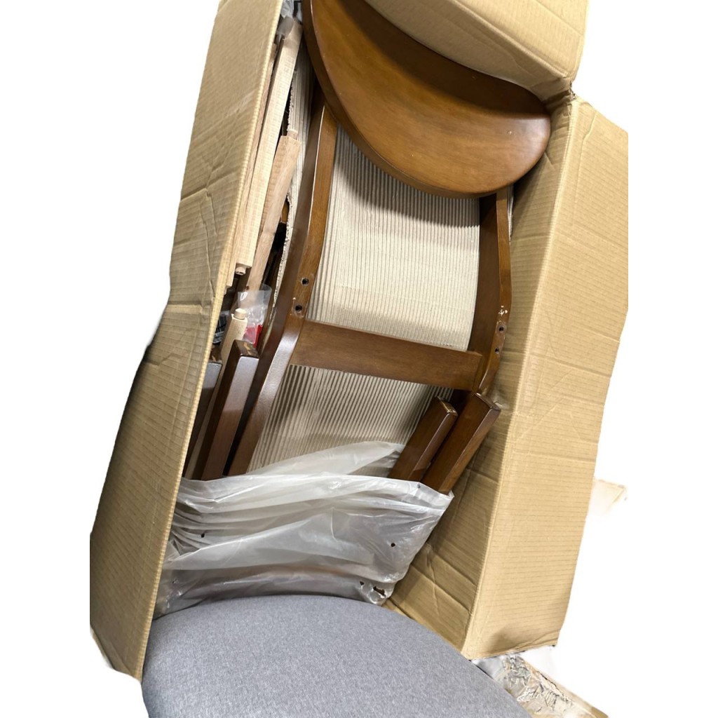 Tags: Baxton, Studio, Damara, Mid-Century, Modern, Grey, Fabric, Upholstered, and, Walnut, Brown, Finished, Wood, 1-Piece, Dining, Chair