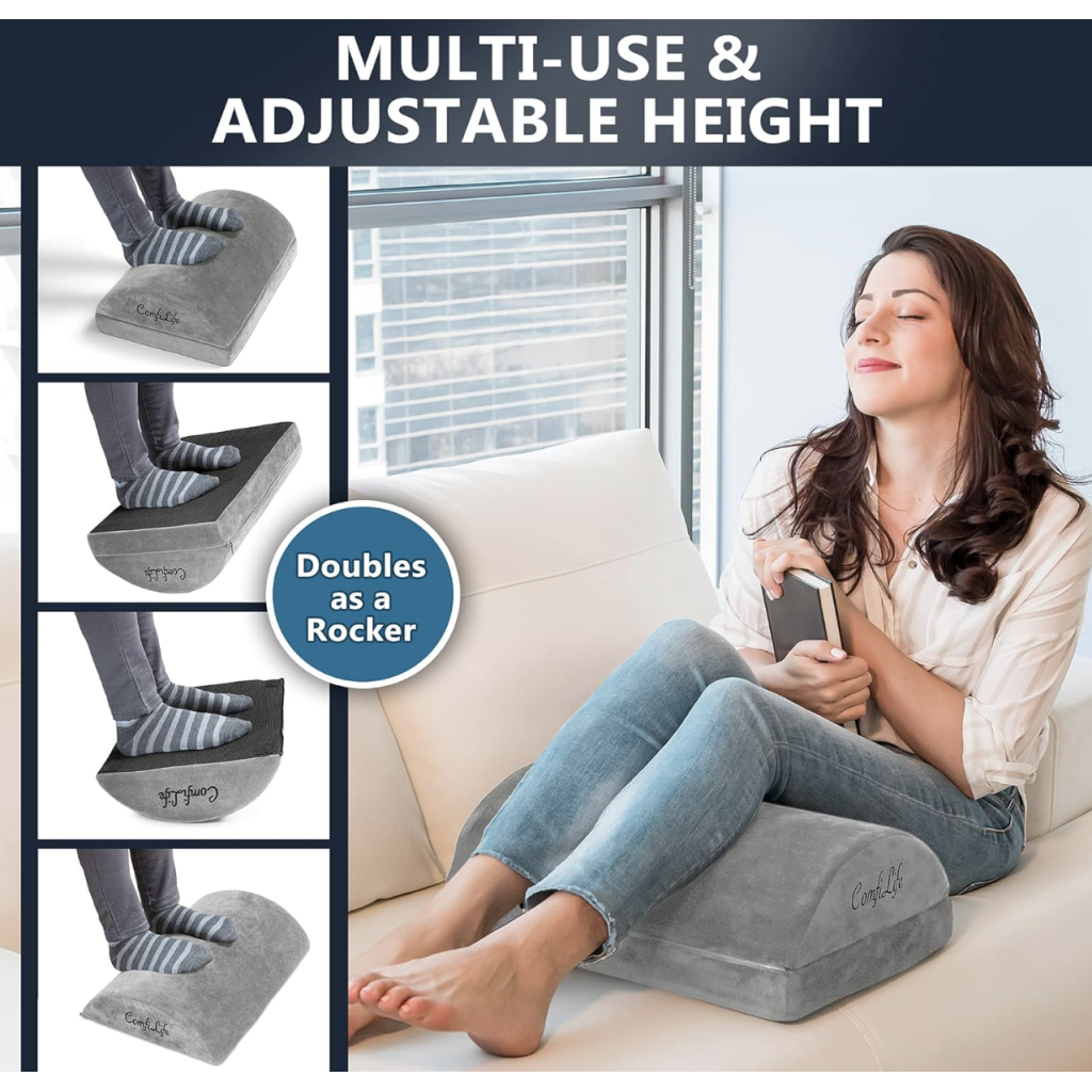 ComfiLife Foot Rest for Under Desk at Work – Adjustable Height Memory Foam Foot Stool for Under Desk, Office Chair & Gaming Chair – Ergonomic Footrest for Back & Hip Pain Relief (Gray)