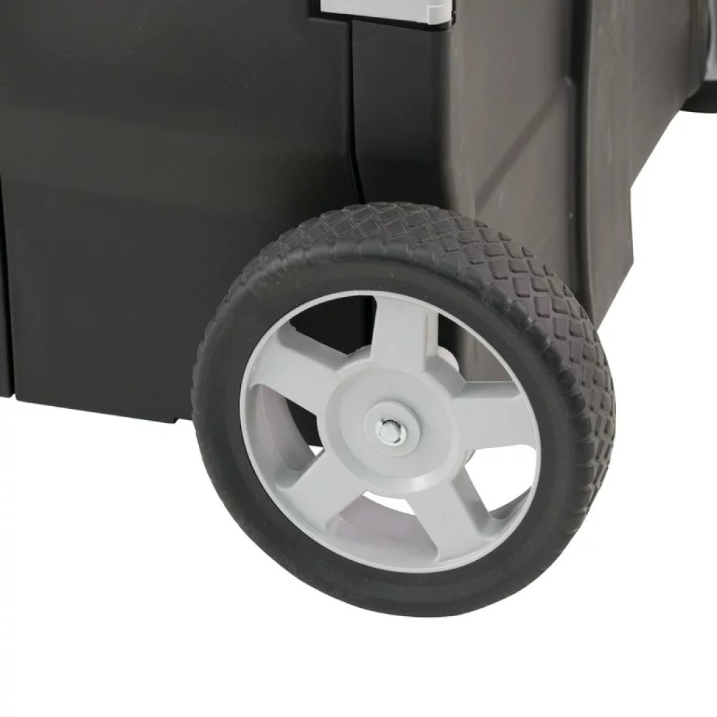 - 6" heavy-duty wheels with all-terrain tread. Improves handling.