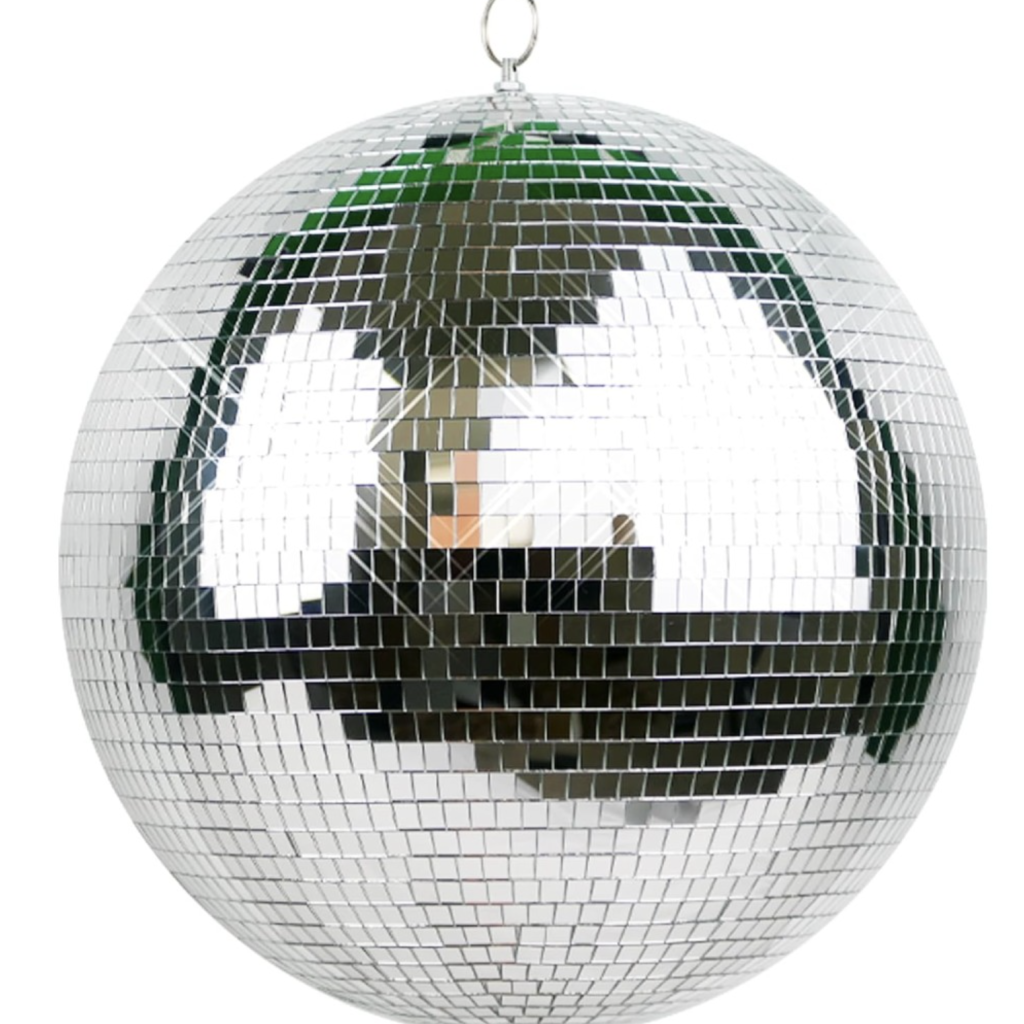 - 2. Measuring 12 inches in diameter, this high-quality disco ball is made with clear mirrors for a flickering effect.