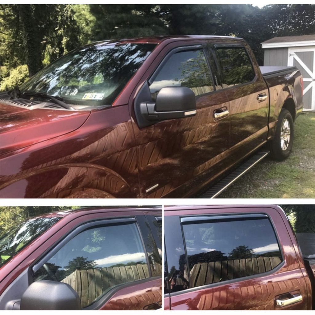 Lightronic Extra Durable Clip-on In-Channel Auto Vent Window Visor, Fits 2015-2025 Ford F-150, 2017-2025 F-150 Raptor, SuperCrew, UV Protection Rain Guard, Original Window Deflector, Dark Smoke, 4-Pcs