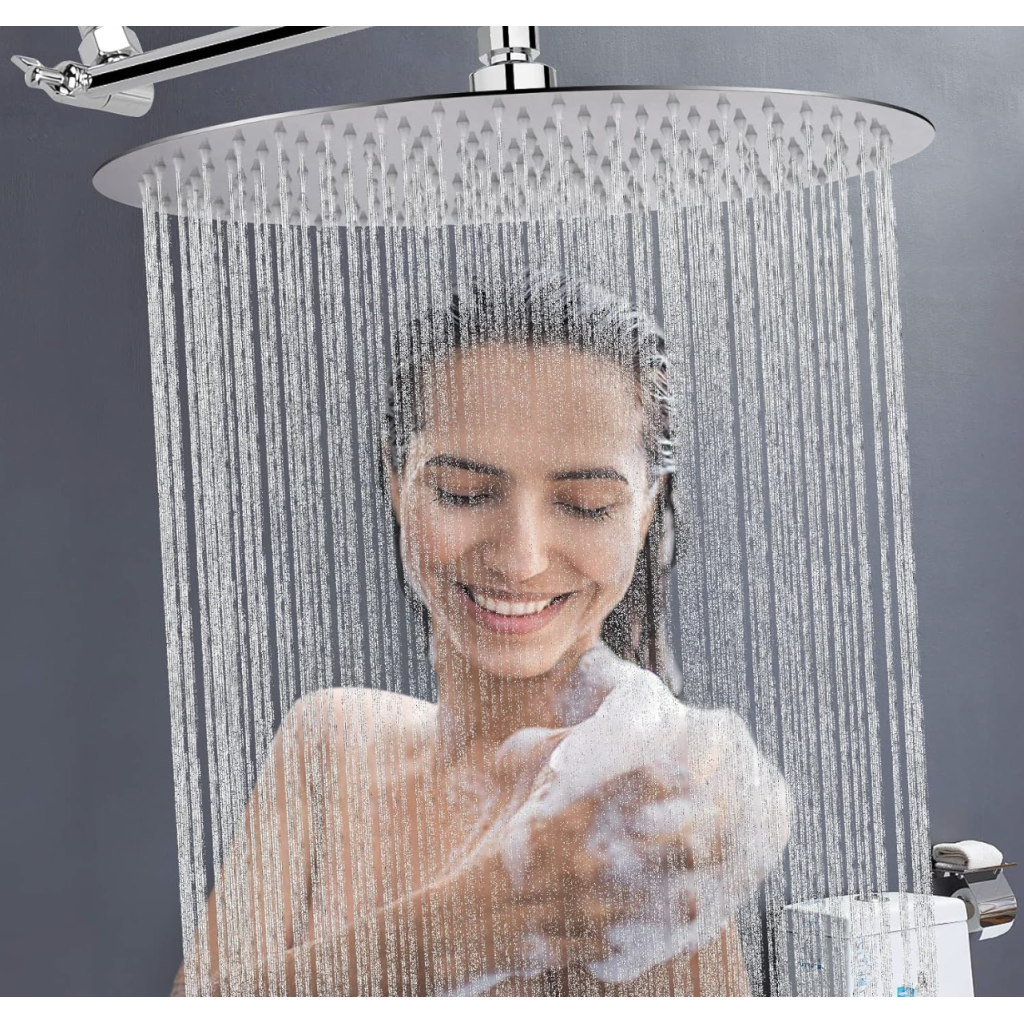 - LARGE, THIN WITH HIGh WATER FLOW – NearMoon Shower Head is super large with 16 by 16 inch, full cover the body. The combination of ultra-thin and air-in technology leads to strong pressure, booster water pressure,powerful rain shower bring a wonderful bath.