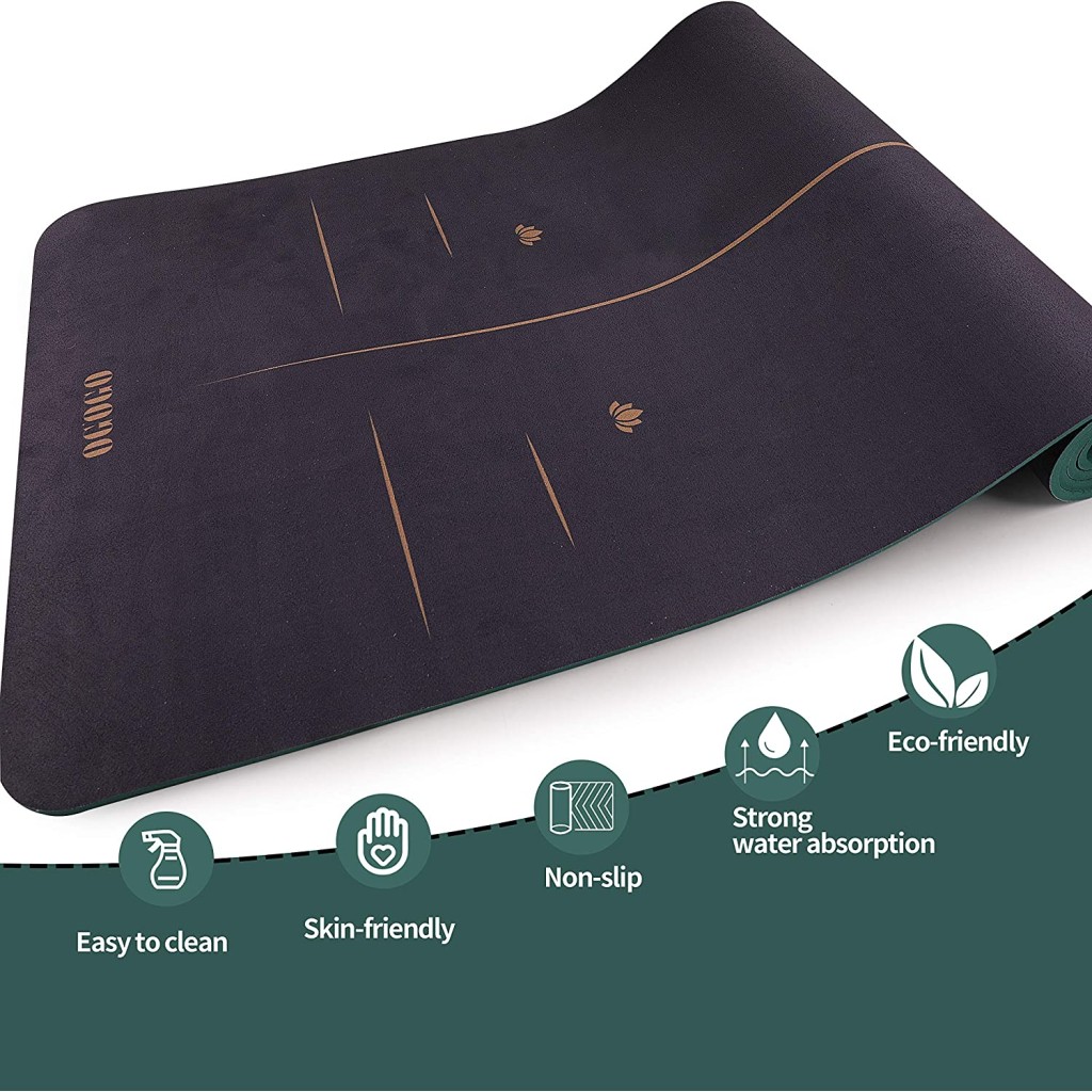 OGOGO Suede Yoga Mat,Non Slip Eco Friendly Fitness Exercise Mat with Carrying Strap,Pro Yoga Mats for Women and Men,Workout Mats for Home