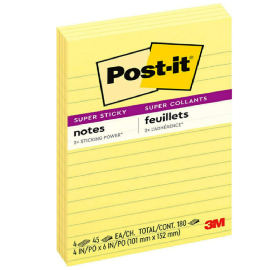 - Post-it Super Sticky Notes stick and re-stick so your to-do lists get noticed.