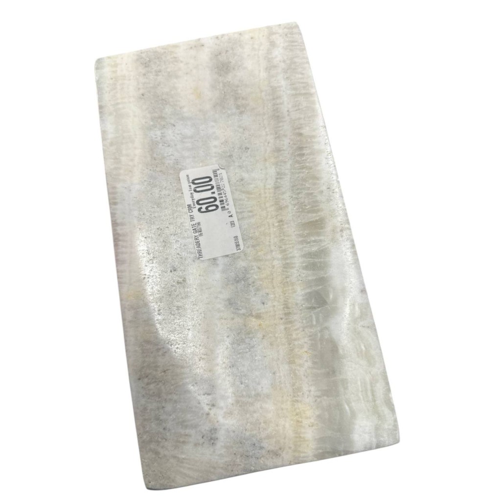Approx measurements: 9 in x 5 in Add a touch of luxury and sophistication to your bathroom decor with this beautiful Threadery marble cream onyx stone tray from Bed Bath & Beyond. Designed with a modern style, this tray is perfect for adult bathrooms and features a creamy color that is sure to match any bathroom theme. Crafted from high-quality marble and stone materials, this tray is both durable and elegant, making it the perfect addition to any bathroom.